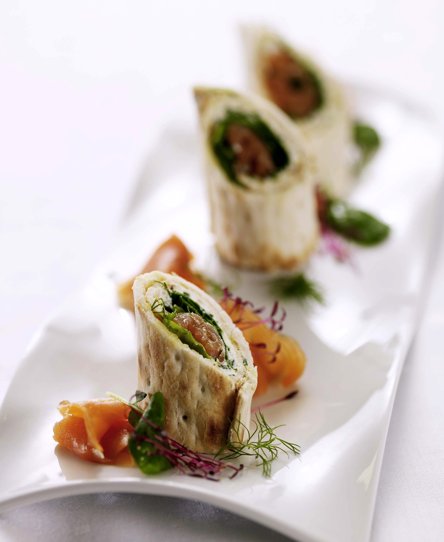 · Полученную массу намазывают тонким слоем на тортилью, сверху кладут тонкие кусочки копченой семги.