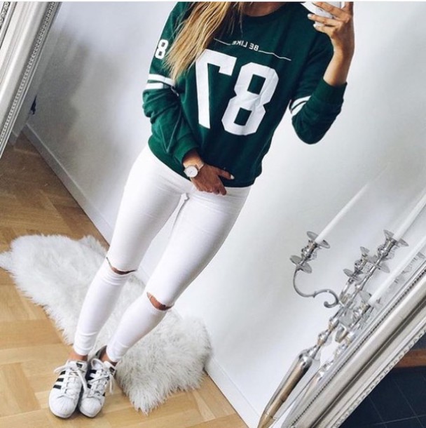 Бывают очень красивые модели, украшенные бахромой, манжетами, декоративными пуговицами. Молний и пуговиц на застежке леггинсов нет. Обычно джеггинсы держатся на плотной резинке. Джеггинсы невероятно легкие и удобные в носке. Узкие джинсы зачастую сковывают движения, застежка давит на живот, после чего он даже может болеть. В джеггинсах Вы будете свободно двигаться, не чувствуя никаких неудобств. Полным женщинам надо грамотно комбинировать джеггинсы с другими предметами гардероба.